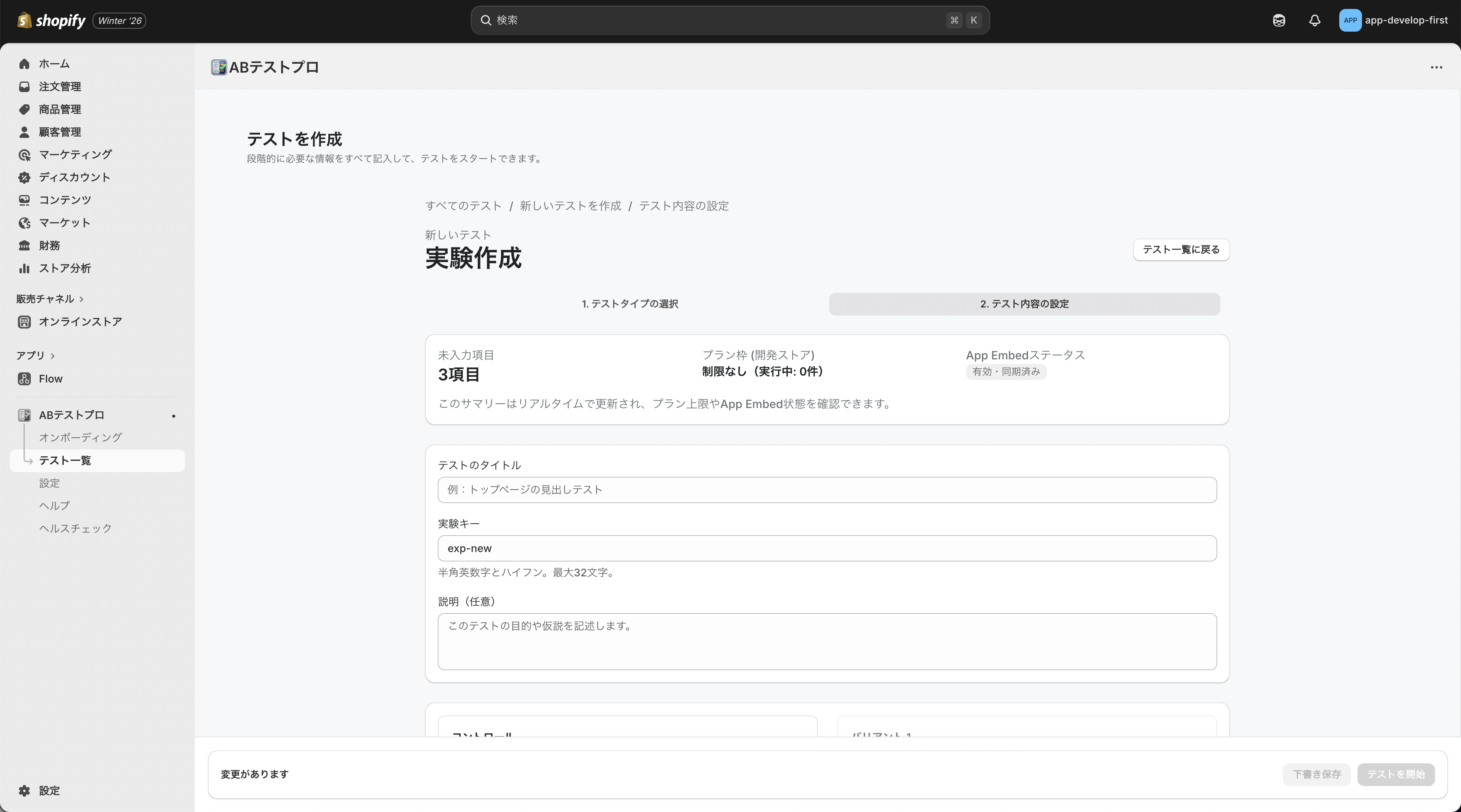 - 実験キー: 半角英数字とハイフン、最大32文字(タイトルから自動生成)