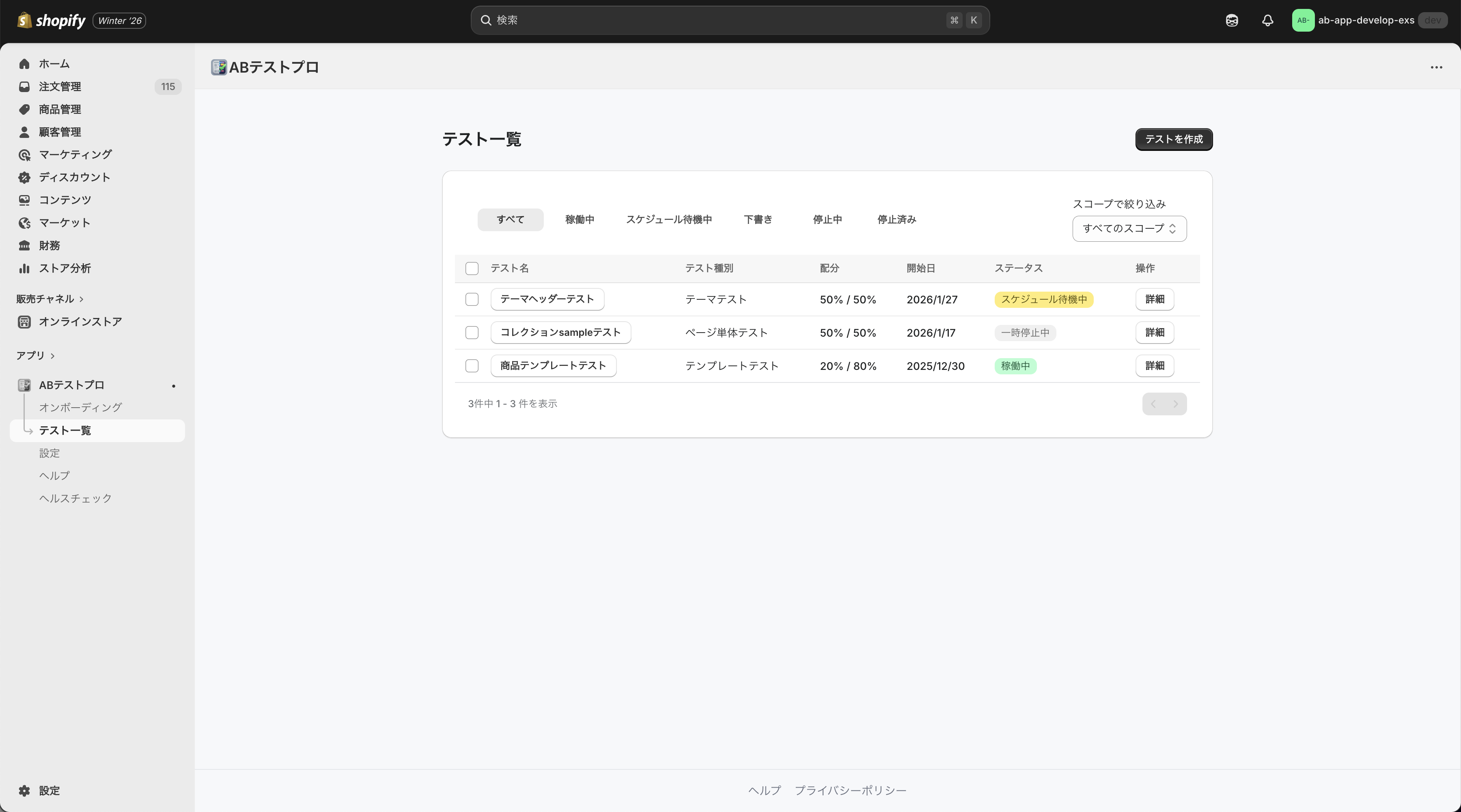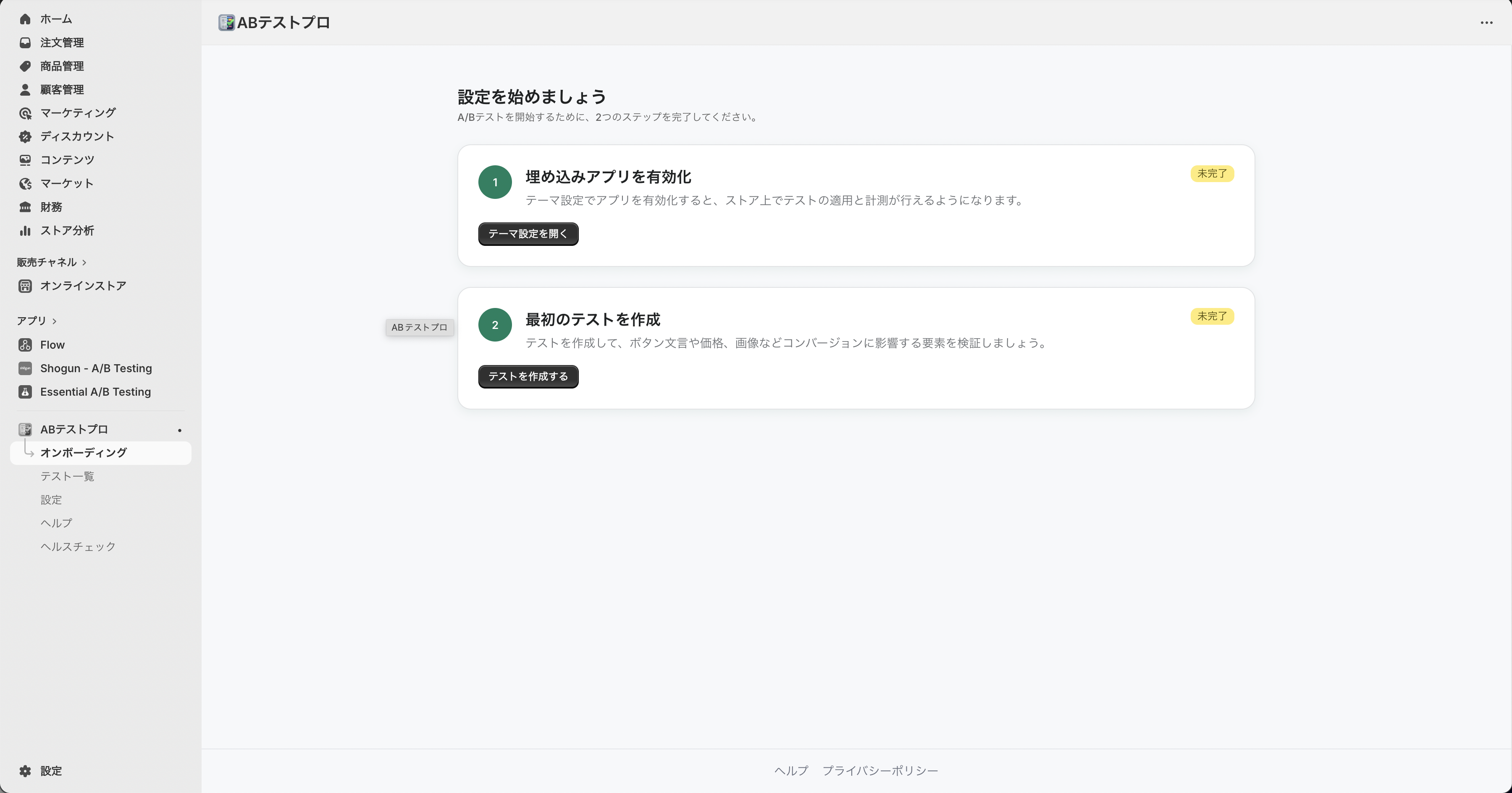 ストアの設定からテストの作成・分析まで、管理画面の手順を最短で理解できるようにまとめています。