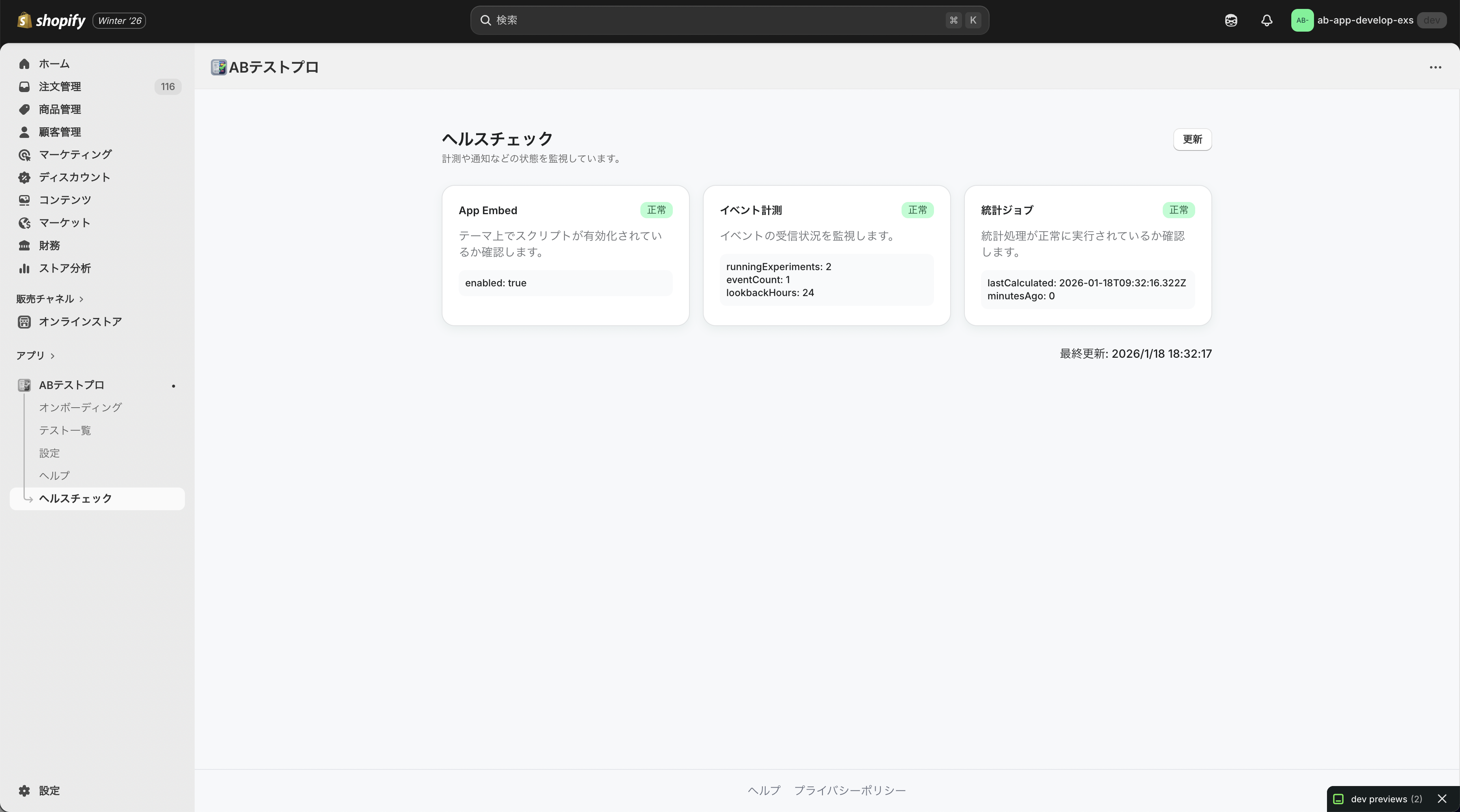 - ヘルスチェックで「イベント計測」「統計ジョブ」が警告になっていないか