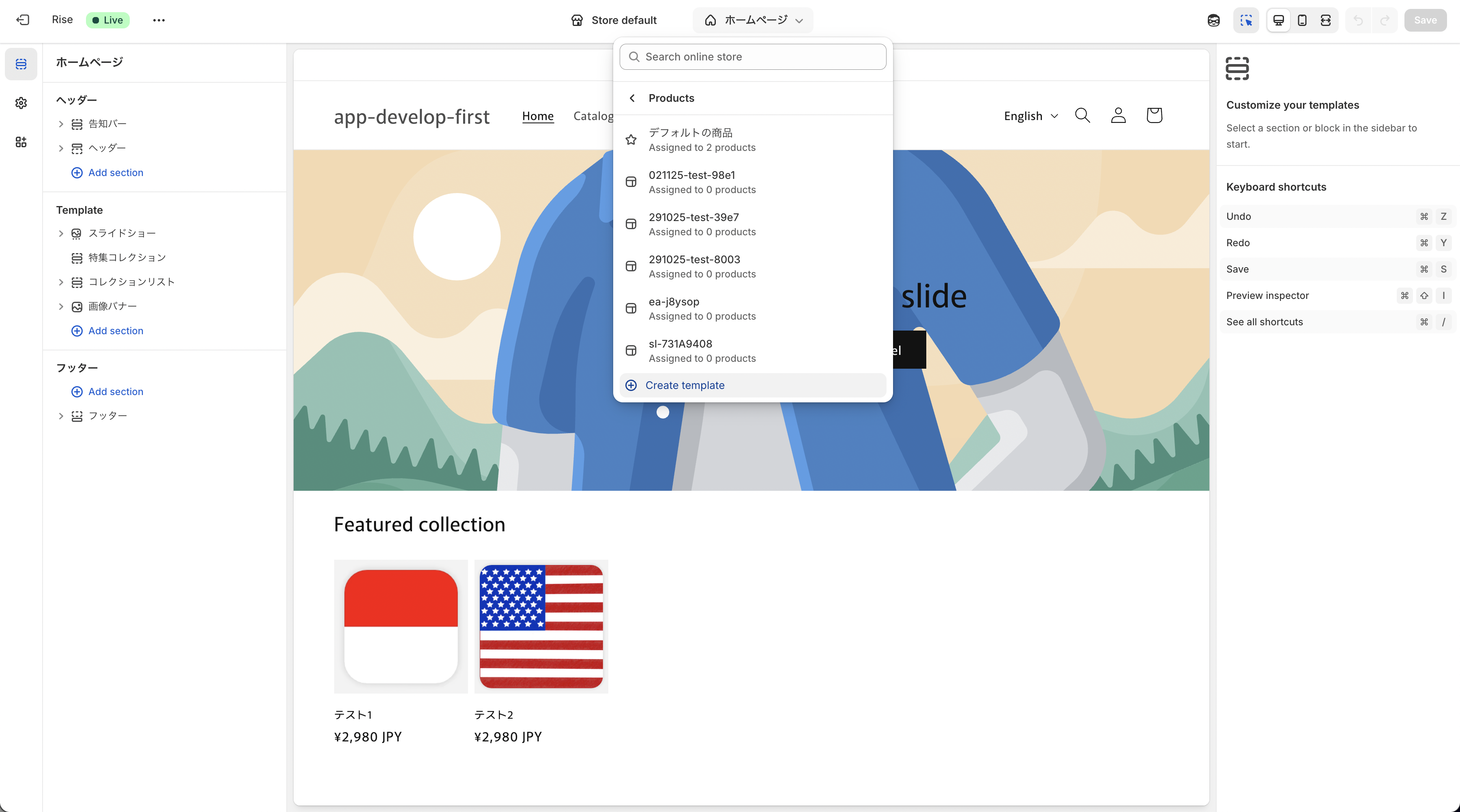 アプリからテンプレート複製はできません。テーマエディタでテンプレートを複製し、サフィックス付きで保存してください。
